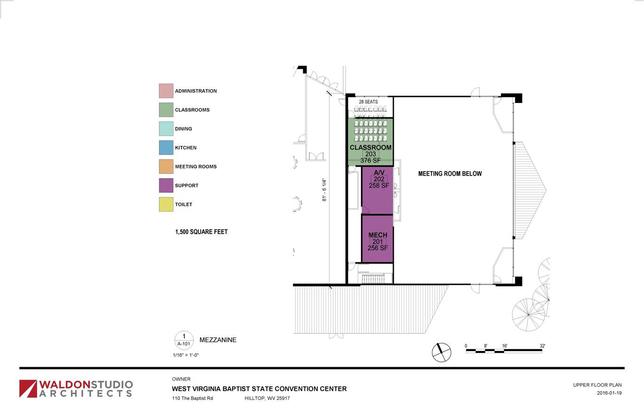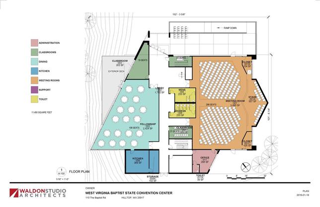 Completing the proposed three story (96 by 24) addition to the present structure which contains the dining room and auditorium that has a seating capacity of 600. The addition will provide temporary offices for the location of central headquarters for the convention, conference rooms, and classrooms for Christian education. Accordion doors will be used so that all rooms will be multiple purpose units. Winterize all sleeping quarters and main buildings for year-round use. Creation of attractive entrance and entry signs. Improving existing pond and reforestation according to proposed study. Acquisition of strategic property adjacent to camp area. Housing for director-manager. This phase is completed.